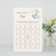 Featuring a sweet watercolor teddy bear flying a vintage aeroplane with soft pastel balloons, this design is perfect for a We Can Bearly Wait baby shower theme. Guests will fill in each square with gifts they think the mum-to-be will receive. The first guest to get five in a row wins!