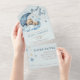 Teddy Bear we can bearly wait Baby Shower All in One Invitation with tear away Diaper Raffle card. Adorable brown teddy bear asleep on fluffy clouds next to a crescent moon and stars.