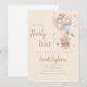 We can bearly wait baby shower invitation featuring a light yellow background with an adorable teddy bear holding balloons. Around the teddy bear there are small stars adding a whimsical and sweet touch.