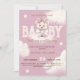 Celebrate the impending arrival of a precious baby girl with this adorable baby shower theme. The centerpiece of the theme is a charming white fuzzy bear adorned with a sweet bow, adding a touch of cuddly cuteness to the festivities. The background is a lovely shade of girly pink, creating a soft and joyful atmosphere. Playful clouds surround the bear, adding a whimsical and dreamy element to the overall design. This delightful combination of white, pink, and fluffy clouds creates a dreamy ambiance, perfect for welcoming the little princess on the way. It's a celebration that promises to be filled with warmth, joy, and the anticipation of new beginnings.