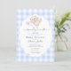 Celebrate the upcoming arrival with this adorable “We Can Bearly Wait” baby shower invitation. This sweet design features a charming watercolor teddy bear with a blue bow and pacifier, set against a soft blue gingham background with an elegant scalloped frame. Perfect for a baby boy shower, teddy bear themed baby shower, or classic nursery celebration, this invitation has a cozy, timeless feel. Easily personalize the details to create a memorable invitation that will delight your guests and set the tone for a joyful baby shower.