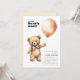 A baby shower "we can bearly wait" invitation featuring a teddy bear holding a balloon for a boy or girl . Matching items available in the bearly wait Teddy Bear Baby Shower collection.