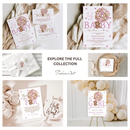 Welcome your baby girl with TsikonArts' enchanting baby shower collection! 🎉👶 Discover our charming napkins featuring an adorable teddy bear nestled among soft pink balloons, set against a dreamy backdrop of watercolor baby pink hearts. 🧸💕 Create the perfect ambiance for your minimal bohemian-style affair! 💕✨ Let's celebrate this precious moment with love and joy!