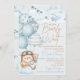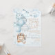 We Can Bearly Wait Baby Shower Invitation. This cute and whimsical teddy bear themed invitation will put a smile on your guests' faces! This design features soft pastel blue and brown colors, balloons, airplanes, clouds, and stars. This is perfect for baby boy baby showers! Easily customize this invitation with you own text. Coordinating invitation, signs, and party decor also available.