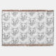 Black and white linear drawing bear face  pattern on a  throw blanket.