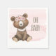 Bears Wear Pink Oh Baby Teddy Bear Baby Shower cocktail napkin. Flowers on the bear.