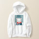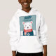 Fun Christmas hoodie featuring a cute cartoon white bear on a snowy background, with a blue sweater and red scarf.
