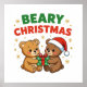 Two adorable little bears and a gift with typography of Beary Christmas.