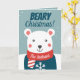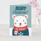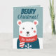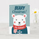 Customisable beary Christmas ornament featuring a fun cartoon white bear on a snowy background, with a blue sweater and red scarf.