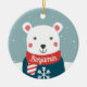 Customizable beary Christmas ornament featuring a fun cartoon white bear on a snowy background, with a blue sweater and red scarf.