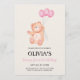 Beary First Pink Balloon 1st Birthday Teddy Invitation