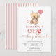 Celebrate your little ones special milestone with this adorable teddy bear first birthday invitation. Featuring a pastel design with a cute bear holding a heart balloon, playful fonts, and charming pink accents, this card sets the perfect tone for a sweet and memorable party. Personalise with your childs name, party details, and RSVP information to create a keepsake guests will love. Ideal for baby girl birthdays, this invitation blends whimsy and warmth to make your celebration unforgettable.