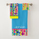 A bold design of polka dot bubbles over stripes in a rainbow of bright colours makes for a retro effect with modern appeal. Perfect for any child's bathroom or to liven up the guest bath. The background colour of the bath towel (shown here in baby blue) and the border accent colour of the hand towel (shown here in sunny yellow) may be changed to any colours you like. You may also choose any colour you like for the accent stripe colours (shown here in hot pink and lime green). You may personalise this towel set with any name or leave the text field blank if you prefer it without a name. Washcloths, hand towels, and bath towels are available separately or as a set. Choose your own colours for a mix & match set that will coordinate perfectly with your colour scheme