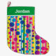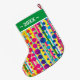[Beatnik Bubbles] Retro Polka Dot Striped Green Large Christmas Stocking