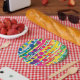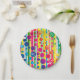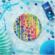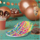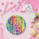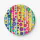 A bold design of polka dot bubbles over stripes in a rainbow of bright colours makes for cheerful paper plates with a subtle Happy Birthday wish worked in. The message may be customised for any occasion or deleted altogether by leaving the text field blank.