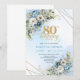 Beautiful 80th Birthday Invitation Gold Frame Blue