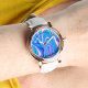An elegant rose gold watch with a beautiful blue liquified abstract design. This pretty watch comes with an elegant white leather wristband. The watch face has a text message. Text and photos are customisable, and can be easily personalised to fit your needs. This unique and beautiful watch is the best gift for your wife, girlfriend and mum. Great gift for birthday, wedding, anniversary, holiday, Valentine’s Day, Mother’s Day , and for yourself!