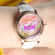 An elegant rose gold watch with a beautiful pink liquified abstract design. This pretty watch comes with an elegant white leather wristband. The watch face has a text message. Text and photos are customisable, and can be easily personalised to fit your needs. This unique and beautiful watch is the best gift for your wife, girlfriend and mum. Great gift for birthday, wedding, anniversary, holiday, Valentine’s Day, Mother’s Day , and for yourself!