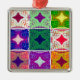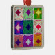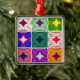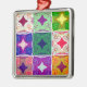 Star-like/Floral Motif: At the centre of each square lies a star-like or stylised floral motif, varying in colour and design across the grid. This variety adds to the sense of movement and dynamism within the artwork.