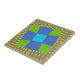 Central Square Design: The square motif features alternating blue and green sections, creating depth and dimension with varying shades.