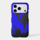 The "Beautiful Amazing Sunset Camel Safari Art Print/Design" is visually striking and evokes a sense of wanderlust and adventure. The strong contrast between the vibrant blue background and the bold black silhouettes creates a dramatic effect that captivates the viewer.