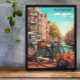 Check out this beautiful Amsterdam Netherlands poster that is showcasing the canals and unique architecture of the dutch capital in Holland. This product makes a great travel souvenir and gift idea for every tourist and visitor of the european travel destination. Make it your own and purchase now.