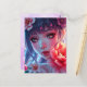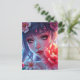 Beautiful Anime Girl Glitchcore Floral Postcard