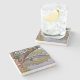 THIS STONE COASTER PRESENTS A SERENE SCENE: A BEAUTIFUL ARCHED STONE BRIDGE REFLECTED IN THE POND. GNARLED TREE IN FOREGROUND AND OTHER TREES BEHIND THE BRIDGE.CURRENTLY THERE ARE THREE STONE TYPES AVAILABLE: MARBLE, TRAVERTINE AND SANDSTONE (THE LIMESTONE IS OUT OF STOCK). COASTERS MAKE NICE HOSTESS GIFTS!