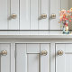 Gorgeous Art Deco Dragonfly brooch with glass wings, pretty pearls, white enamel flowers and gold leaf filigree. Light blue background can be changed to your liking. A beautiful addition for your kitchen cabinets, bath, or bedroom dresser. Knobs are not shown to scale on the cabinets.