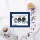 Unique, classic, trendy, pretty and decorative Holiday card. Cute Happy Holidays greeting text and room to customise or personalise with a photo, family name (or individual names) and (limited) greeting message of your choice, framed by two gold foil snowflakes on a classy dark denim jeans blue coloured background.