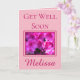 A lovely greeting card for a recovering loved one, their name can be personalized on the front cover. Featuring a pink background with pink azaleas in the middle, "Get Well Soon" is written at the top with their name at the bottom. In the inside of the card is a beautiful message. Order your get well soon card!