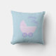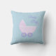 Elegant beautiful baby boy stroller on turquoise Throw Pillow. Text can be personalised. Elegant beautiful Decorative Pillows. Stylish modern Home Decor. Fashion Throw Pillows.