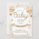 Beige And White Watercolor Illustrative Cute Baby Shower Greeting Invitation