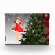 Portrait of ballerina wearing red dress with snowflakes.
