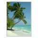 Photograph of palms, sand, ocean, sky of a Maldives beach.