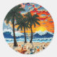 Beautiful Beach Scene with Palm Trees Classic Round Sticker
