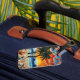 Beach art luggage tag. An impasto oil painting style ai illustration of a beach full of palm trees, sea glass, sea shells and ocean waves at sunset. A bright colourful mesh of colours make this coastal art vibrant and beautiful!