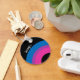 Beautiful bisexual pride keychain gift on a bold black background for a bi friend featuring the pretty bisexuality flag colours shaped into a blue, purple, and pink rainbow. A cool custom queer present.