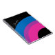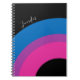 Beautiful bisexual pride journal gift on a bold black background for a bi friend featuring the pretty bisexuality flag colours shaped into a blue, purple, and pink rainbow. A cool custom queer notebook.