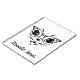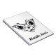 A beautiful black and white notebook, this item features a white background with a picture of a cute cat wearing glasses. At the bottom is a place to insert your name in lovely black cursive font. Order yours today!