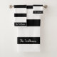 Modern and elegant, personalise a lovely bathroom towel set. The design features a beautiful black and white striped theme with your text included on the lower right hand corner of each item. This set includes a wash cloth, hand towel, and bath towel which can be purchased together or separately.