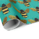 BEAUTIFUL BLACK GOLD BUMBLEBEE BEE TEXT AQUA GREEN WRAPPING PAPER