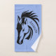 Beautiful Black Horse Design Bath Towel Set with optional personalisation and customisable background colour.