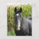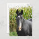 A beautiful black mare with blue eyes poses for a photo in front of a corn field. Her name was Angel and she was the most amazing mare that I loved riding. Photography by Angelandspot taken in the 2010s era.