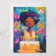 Perfect card for that special queen in your life! Colourful, like she is, and just as beautiful! Bright, brilliant colours in green, pink, and blue to emphasize how she lights up the world. Background is lovely vibrant flora reminiscent of the islands, and a beautiful birthday cake is the cherry on top!