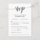 This is the Beautiful Script, RSVP (Respond) Enclosure Card, in Black font, where you can edit, change colour and format it as per your design requirement, with meal options, reserved seats, number attending and song request option.