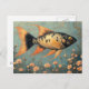 Beautiful Black Spotted Fish and Pink Flowers Postcard