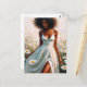 This hyperfeminine, melanin-rich postcard features painting of a serene Black woman wearing a white summer dress in a daisy field.