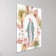 A beautiful print including a hand illustrated image of the Blessed Mother, watercolor florals, and gold foil details.