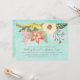 Watercolor floral design in coral orange, pinks, ivory, yellow, and greens over an aqua coloured background. Easy to customise! Rustic, stylish, colourful - perfect for your special occasion!